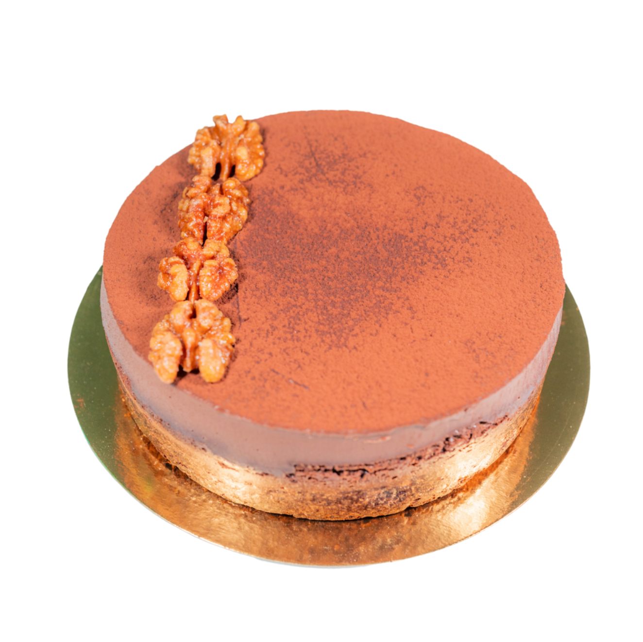 Bizcocho Brownie con nueces, cremoso de Guanaja 70% y nueces caramelizadas.